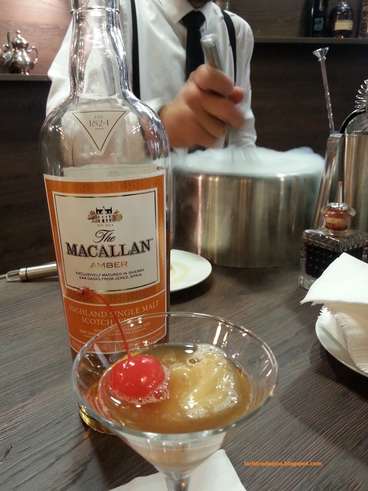 Tampoco puedo acabar sin mencionar otro gran cocktail: Whisky Amber de Macallan, jarabe de caramelo y vainilla con nitrógeno líquido. Mi último trago para llevarme un buen sabor de boca y la convicción que esto del cocktail no es una moda pasajera. Llegó para quedarse.