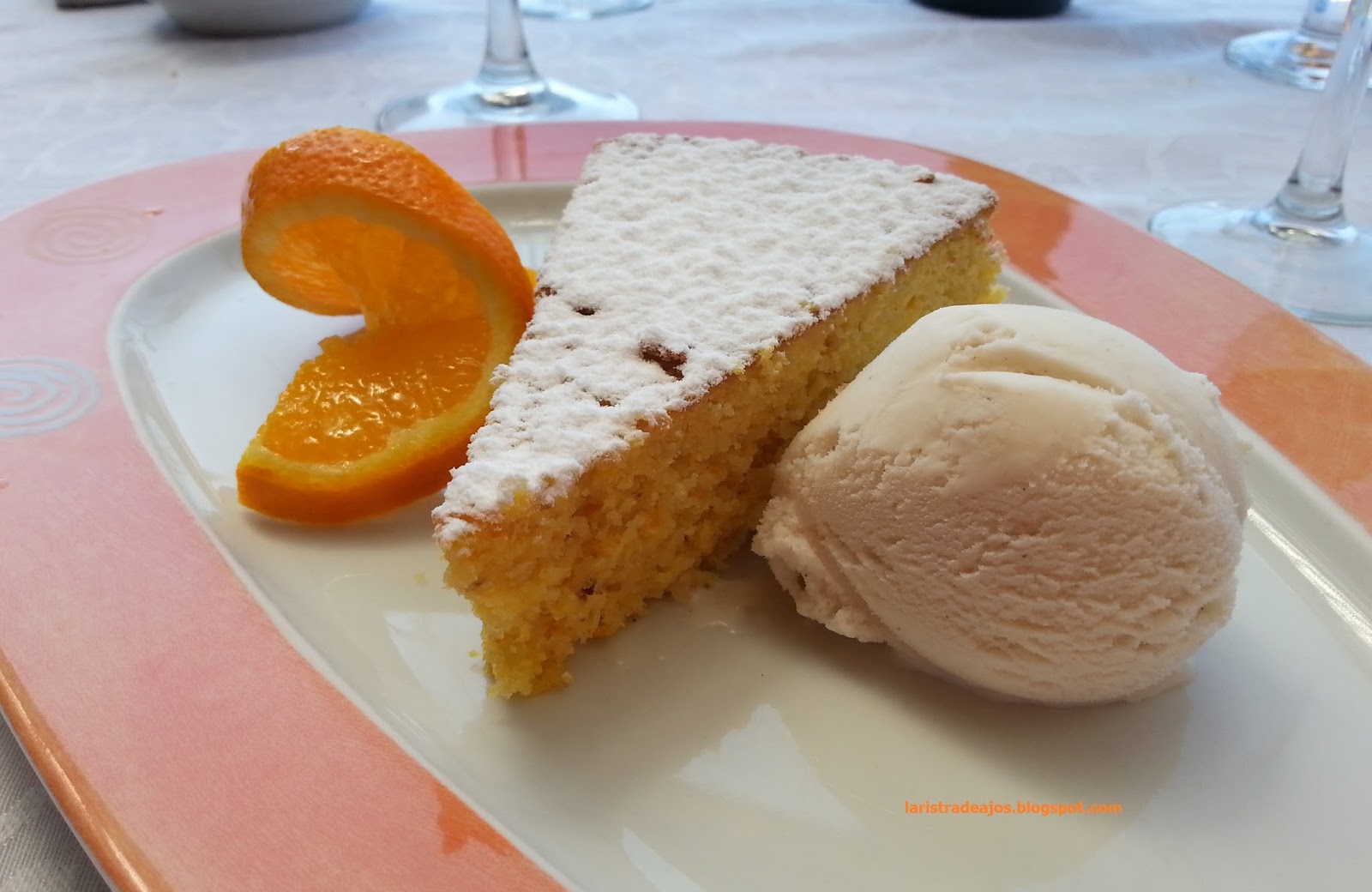 Y como postre para redondear el almuerzo, Gató (bizcocho típico de la isla) de almendras y naranja con helado de almendras crudas. De nuevo un viaje a las raíces mallorquinas y un homenaje a los productos de calidad de la zona.