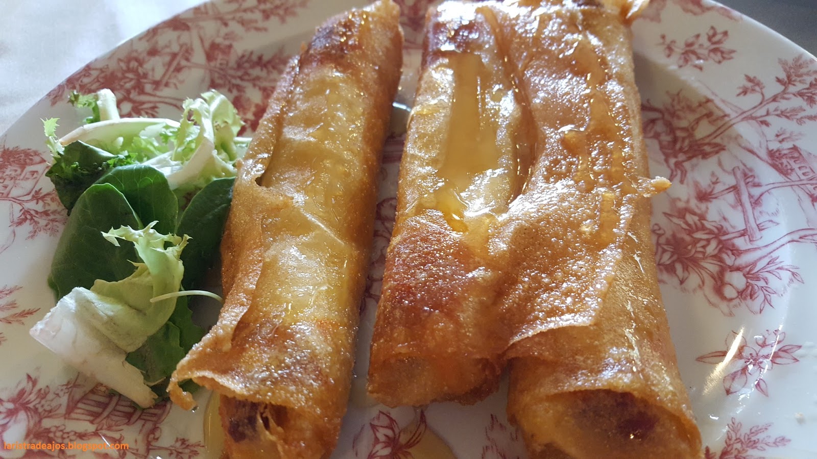 Divertido son los canutillos de Brie con sobrasada, aunque eché de menos un poco más del producto mallorquín. Se agradece que pongan un poco de ensalada al lado para refrescar la boca.