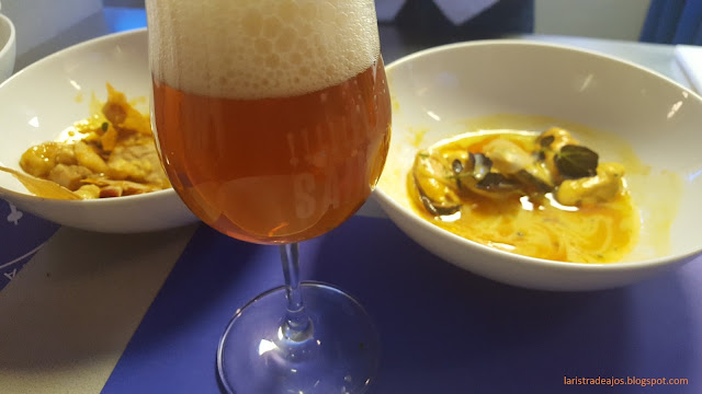 Pero más allá de este plato pude deleitarme con unos espectaculares mejillones en escabeche templado (para repetir varias veces) y un queso fresco de Cantagrullas con cerveza Passiflora para comenzar el festín.